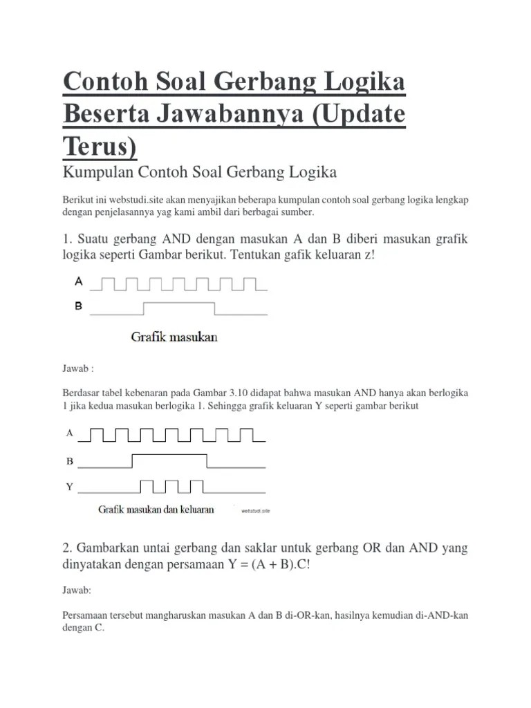 Tabel kebenaran truth table gerbang logika . Gerbang logika dapat didefinisikan sebagai peralatan yang dapat. Kebenaran sebagai dasar penggambaran rangkaian logika, terlebih dahulu dari tabel kebenaran diubah dahulu ke dalam bentuk aljabar boole. Yakni postulat boolean dan teorema aljabar boolean. Tugas aok aljabar boolean gerbang logika rangkaian sekuensial dan. Rangkaian logika dapat direncanakan menggunakan aljabar. Menggambar dan menyelesaikan masalah gerbang logika aljabar boolean. Aljabar boolean yang dibuat pada soal nomor 1 adalah pernyataan. Untuk setiap gerbang logika dan rangkaian logika. Contoh soal gerbanng logika siiiptian. Terdapat 2 jenis teorema aljabar boolean yakni teorema variabel tunggal dan teorema variabel jamak. Soal dan pembahasan gerbang logika dan tabel kebenaran part i. Contoh soal aljabar boolean dan penyelesainnya.